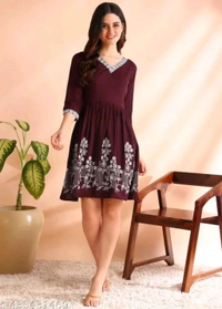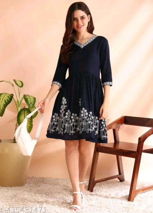Viscose Rayon Embroidery Work Western Dress